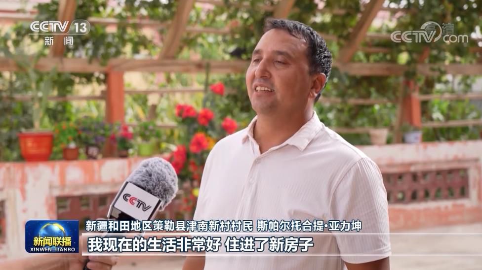 新疆和田地區(qū)策勒縣津南新村村民 斯帕爾托合提·亞力坤:我現(xiàn)在的生活非常好,住進了新房子,家里通水通電也有網(wǎng)絡(luò),家里種了兩座大棚,我還當(dāng)貨車司機配送貨物,我們家一年的收入10多萬元,我覺得生活很幸福,感恩黨、感恩總書記。