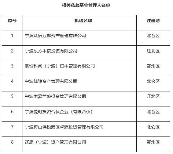 中新網(wǎng)8月17日電 寧波證監(jiān)局16日發(fā)布關(guān)于要求相關(guān)私募基金管理人的有關(guān)負(fù)責(zé)人到寧波證監(jiān)局接受監(jiān)管約談的通知。通知顯示,寧波證監(jiān)局2022年3月30日印發(fā)《關(guān)于開展轄區(qū)私募基金管理人2022年自查工作的通知》(甬證監(jiān)發(fā)〔2022〕12號(hào)),并于2022年6月6日發(fā)布《關(guān)于寧波轄區(qū)2022年逾期未完成自查工作的私募機(jī)構(gòu)專項(xiàng)通報(bào)(第一批)》,截至2022年8月16日,以下8家機(jī)構(gòu)仍未按要求完成相關(guān)工作。