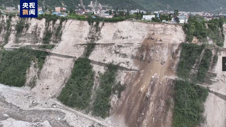 項(xiàng)目部工作人員向記者表示,通過無人機(jī)航拍可以看到,塌方路段最嚴(yán)重的地方大概有2.5公里長,塌方量達(dá)到10萬方左右,約15米高,一不小心就有翻下山的危險。由于地形陡峭,目前只有2臺挖機(jī)能參與作業(yè),而道路右側(cè)邊坡還在不??逅?xiàng)目部正克服困難,全力搶通這條通往海螺溝景區(qū)的生命通道。
