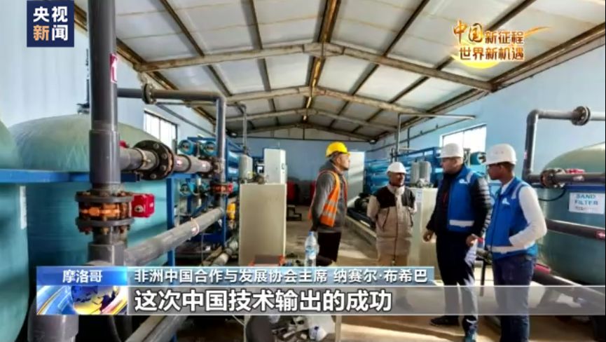 中非鹽水農(nóng)業(yè)示范農(nóng)場技術(shù)人員:經(jīng)過淡化的水含鹽量約為500ppm,而淡化之前,地下水的原本含鹽量可以看到是稍高于4000ppm。這真是太了不起了。