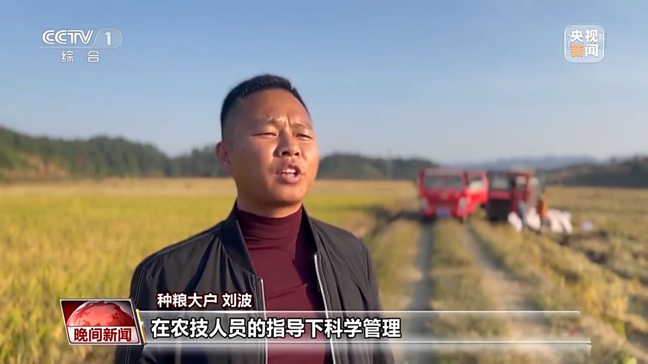 江西撫州黎川縣潭溪鄉(xiāng)蘆陂村種糧戶 湯希堯:按照這個(gè)速度今天一天就能全部割完。今年晚稻的長勢還算不錯(cuò),畝產(chǎn)都在千斤以上。