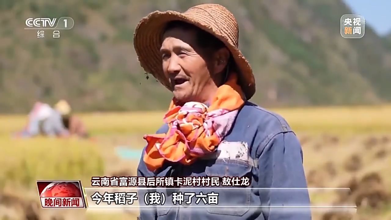 云南省富源縣后所鎮(zhèn)卡泥村村民 敖仕龍:今年稻子種了六畝,一畝收得到二十口袋,這個(gè)稻子比去年飽滿,比去年稱得出來(重),價(jià)格也比去往年好點(diǎn)。