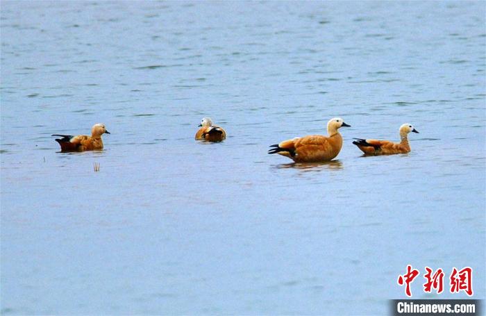 中新網(wǎng)蘭州10月31日電 (記者 馮志軍)“金秋天漸涼,又遇候鳥南飛時(shí)?!苯谝詠恚拭C酒泉市敦煌鳴沙山下黨河濕地內(nèi),首次出現(xiàn)時(shí)而嬉戲,時(shí)而盤旋起舞的50余只國家二級(jí)保護(hù)動(dòng)物野生黃鴨,它們悠閑游弋、覓食。作為候鳥遷徙線上不可或缺的“休息站”,這是酒泉市眾多大漠濕地近年“變身”鳥類樂園的一個(gè)縮影。