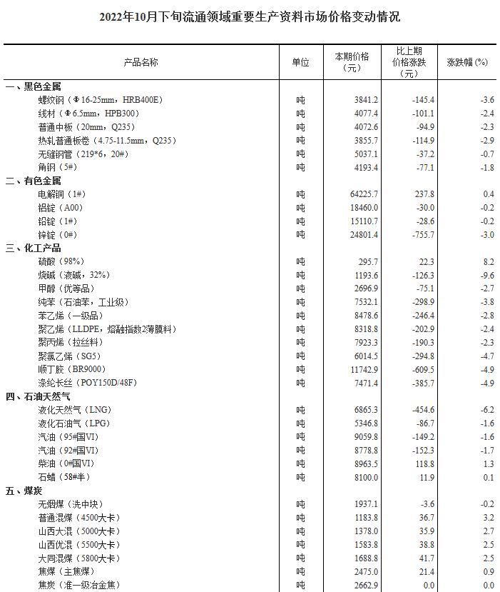 中新網(wǎng)11月4日電 國(guó)家統(tǒng)計(jì)局網(wǎng)站4日公布2022年10月下旬流通領(lǐng)域重要生產(chǎn)資料市場(chǎng)價(jià)格變動(dòng)情況。據(jù)對(duì)全國(guó)流通領(lǐng)域9大類50種重要生產(chǎn)資料市場(chǎng)價(jià)格的監(jiān)測(cè)顯示,2022年10月下旬與10月中旬相比,15種產(chǎn)品價(jià)格上漲,32種下降,3種持平。其中,生豬(外三元)價(jià)格環(huán)比下跌0.7元,跌幅2.5%。(中新財(cái)經(jīng))