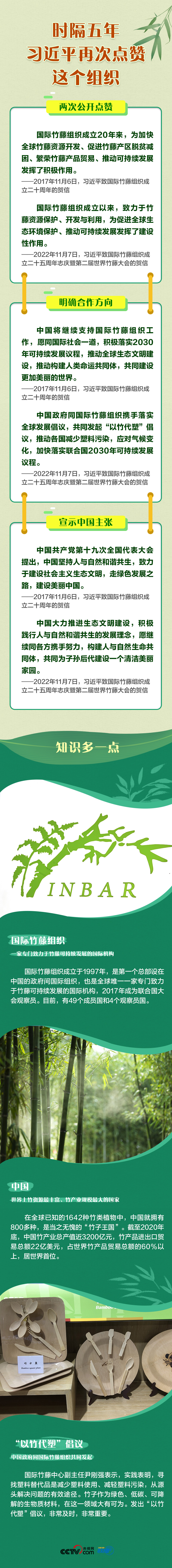 聯(lián)播+“國際竹藤組織成立以來,致力于竹藤資源保護、開發(fā)與利用,為促進全球生態(tài)環(huán)境保護、推動可持續(xù)發(fā)展發(fā)揮了建設性作用?!?1月7日,國家主席習近平向國際竹藤組織成立二十五周年志慶暨第二屆世界竹藤大會致賀信。