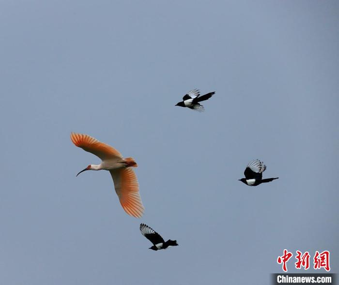 朱鹮和喜鵲打架其實(shí)是一種爭奪領(lǐng)域的行為,在自然界是很普遍也很正常的。朱鹮在野生環(huán)境中,不光要對付老鷹、蛇類等天敵,還要學(xué)會與競爭對手烏鴉、喜鵲等“打交道”,趨利避害,不斷增強(qiáng)自然生存本領(lǐng)。