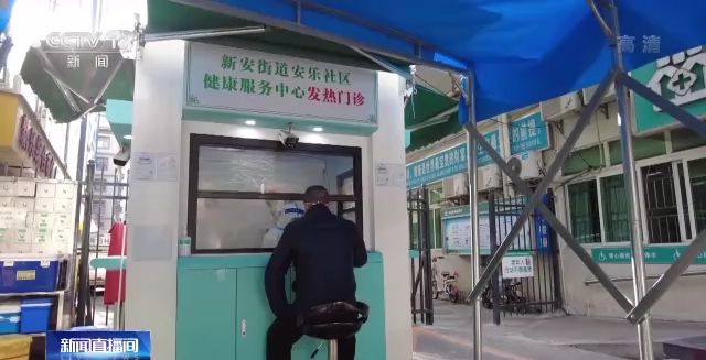 廣東深圳寶安區(qū)新安街道安樂社區(qū)健康服務(wù)中心門口,醫(yī)生在為居民診療。停用的核酸采樣艙經(jīng)過改造后,已變身為發(fā)熱門診。發(fā)熱門診內(nèi)配有電腦、醫(yī)保刷卡機(jī)、制氧機(jī)、必備藥品等,全科醫(yī)生輪流坐診,患者來到這里后,從接受診療、開方、繳費、配藥全過程最快5分鐘就可完成。