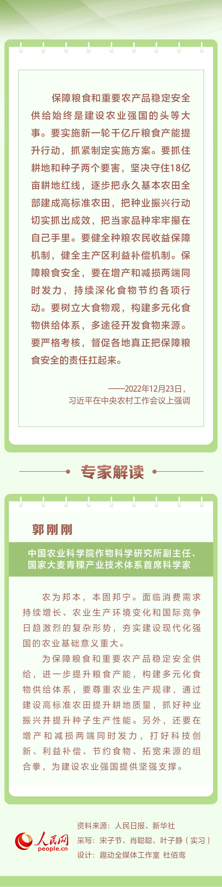12月23日至24日,中央農(nóng)村工作會(huì)議在北京舉行。中共中央總書記、國家主席、中央軍委主席習(xí)近平出席會(huì)議并發(fā)表重要講話。人民網(wǎng)帶您重溫講話要點(diǎn)并邀請(qǐng)專家進(jìn)行解讀。本期聚焦“保障糧食和重要農(nóng)產(chǎn)品穩(wěn)定安全供給始終是建設(shè)農(nóng)業(yè)強(qiáng)國的頭等大事”。