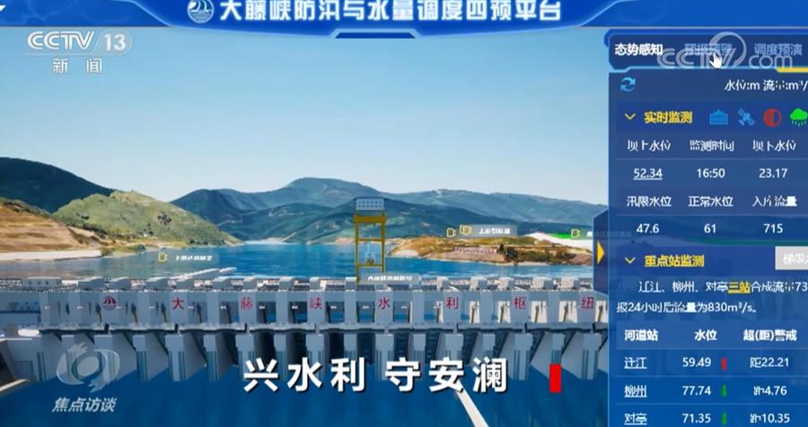與來勢兇猛的洪水形成鮮明對比,大藤峽水利樞紐工程的工作人員卻并沒有那么緊張。因為他們手里已經(jīng)多了一件對付洪水的利器——數(shù)字孿生大藤峽四預(yù)平臺。四預(yù),也就是預(yù)報、預(yù)警、預(yù)演、預(yù)案。此時,雖然大藤峽水利樞紐仍在建設(shè)狀態(tài),但已經(jīng)具備了7億立方米的洪水?dāng)r蓄能力。工作人員通過這一平臺進(jìn)行科學(xué)研判,提前騰出庫容,應(yīng)對洪峰到來。