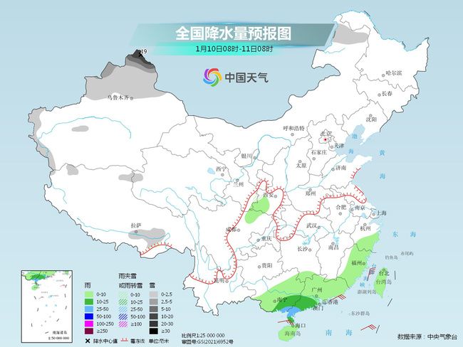 降水方面,今天,我國降水區(qū)域仍集中在一南一北:新疆北部及華南地區(qū),新疆多地有強降雪現(xiàn)身,廣東、廣西的部分地區(qū)或有大雨。具體來看,今天,內蒙古東北部、新疆北部和西部山區(qū)等地部分地區(qū)有小到中雪,其中,新疆北疆北部等地部分地區(qū)有大到暴雪(10~19毫米)。江南東南部、華南大部、臺灣島等地部分地區(qū)有小到中雨,其中,廣西東南部沿海、廣東西南部等地部分地區(qū)有大雨。