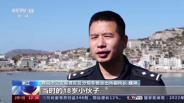 舟山市公安局普陀區(qū)分局東極派出所副所長(zhǎng) 魏坤:當(dāng)時(shí)的18歲小伙子,朝著安徽的方向看看家,想想家,海的話就是一望無(wú)際,感覺(jué)(自己)好像一葉扁舟,看也看不到遠(yuǎn)方。