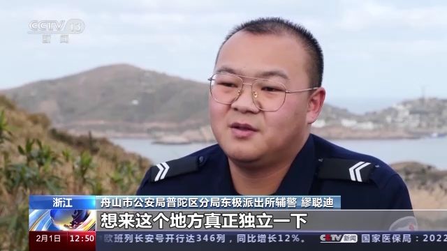 舟山市公安局普陀區(qū)分局東極派出所輔警 繆聰迪:因?yàn)槲蚁雽W(xué)會(huì)獨(dú)立,我之前為什么不在(舟山)本島應(yīng)聘輔警,因?yàn)槲沂菑男“謰尪紝?duì)我挺好的,大學(xué)以后,我爸媽經(jīng)常一個(gè)禮拜,一兩個(gè)禮拜來(lái)學(xué)校看我一次,我從來(lái)沒(méi)有獨(dú)立過(guò),想來(lái)這個(gè)地方真正獨(dú)立一下。