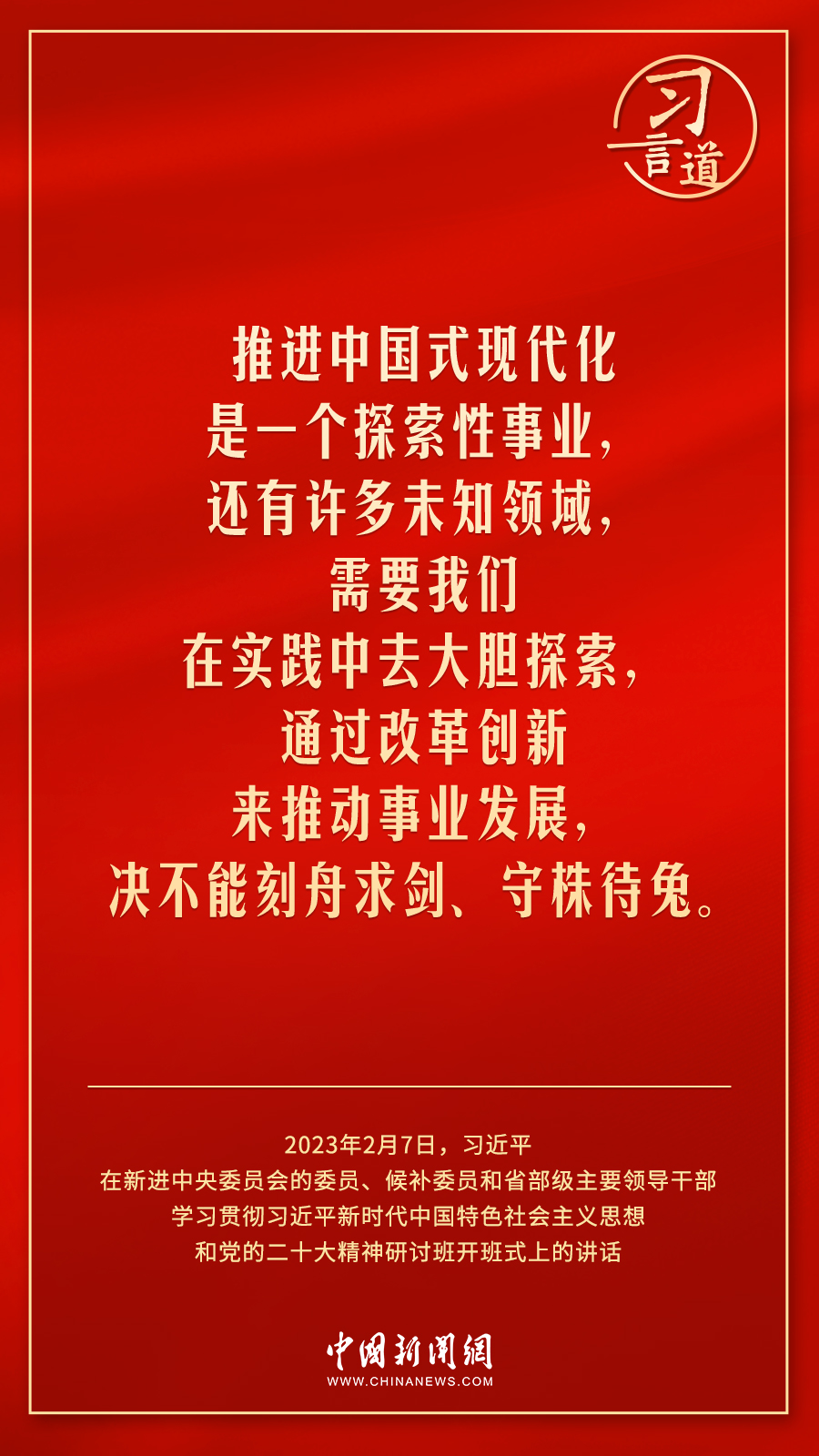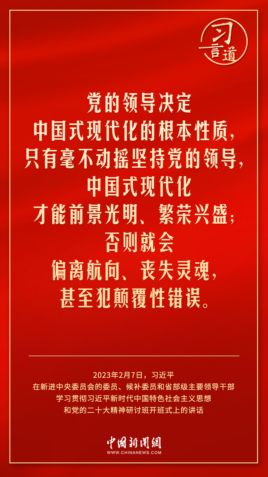 新進中央委員會的委員、候補委員和省部級主要領導干部學習貫徹習近平新時代中國特色社會主義思想和黨的二十大精神研討班2月7日上午在中央黨校(國家行政學院)開班。中共中央總書記、國家主席、中央軍委主席習近平在開班式上發(fā)表重要講話,他強調——