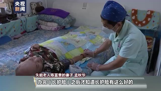 失能老人陳富景的妻子 孟秋華:護(hù)理員一來就幫他揉,我就輕松多了,白天來的好幾個(gè)小時(shí)我能休息,辦完長護(hù)險(xiǎn)后才知道長護(hù)險(xiǎn)這么好,又解決家庭經(jīng)濟(jì)困難,還有人幫著照顧,我說老頭子有救了。