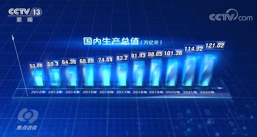 國家統(tǒng)計局局長康義:“這是繼2020年、2021年連續(xù)突破100萬億元、110萬億元之后,又躍上新的臺階。經(jīng)濟總量和人均水平持續(xù)提高,意味著我國的綜合國力、社會生產(chǎn)力、國際影響力、人民生活水平進一步提升?!?/p>