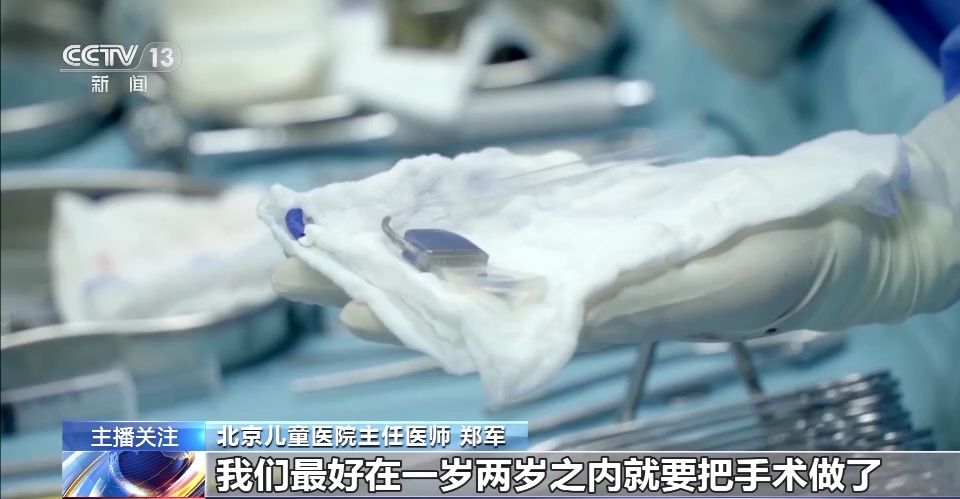 北京兒童醫(yī)院主任醫(yī)師 鄭軍:我們最好在一歲兩歲之內(nèi)就要把手術(shù)做了,效果會特別好,訓練語言形成高峰期在三歲,三歲以后要走下坡路了,像重度(聽力障礙)從來不會說話的,你要四五歲孩子要做完手術(shù)以后,他有時候大腦(掌管聽力的功能)會有些退化,退化以后他就說我們(人工耳蝸)機器很好,聽的聲音也很好,他理解就會有差一點。