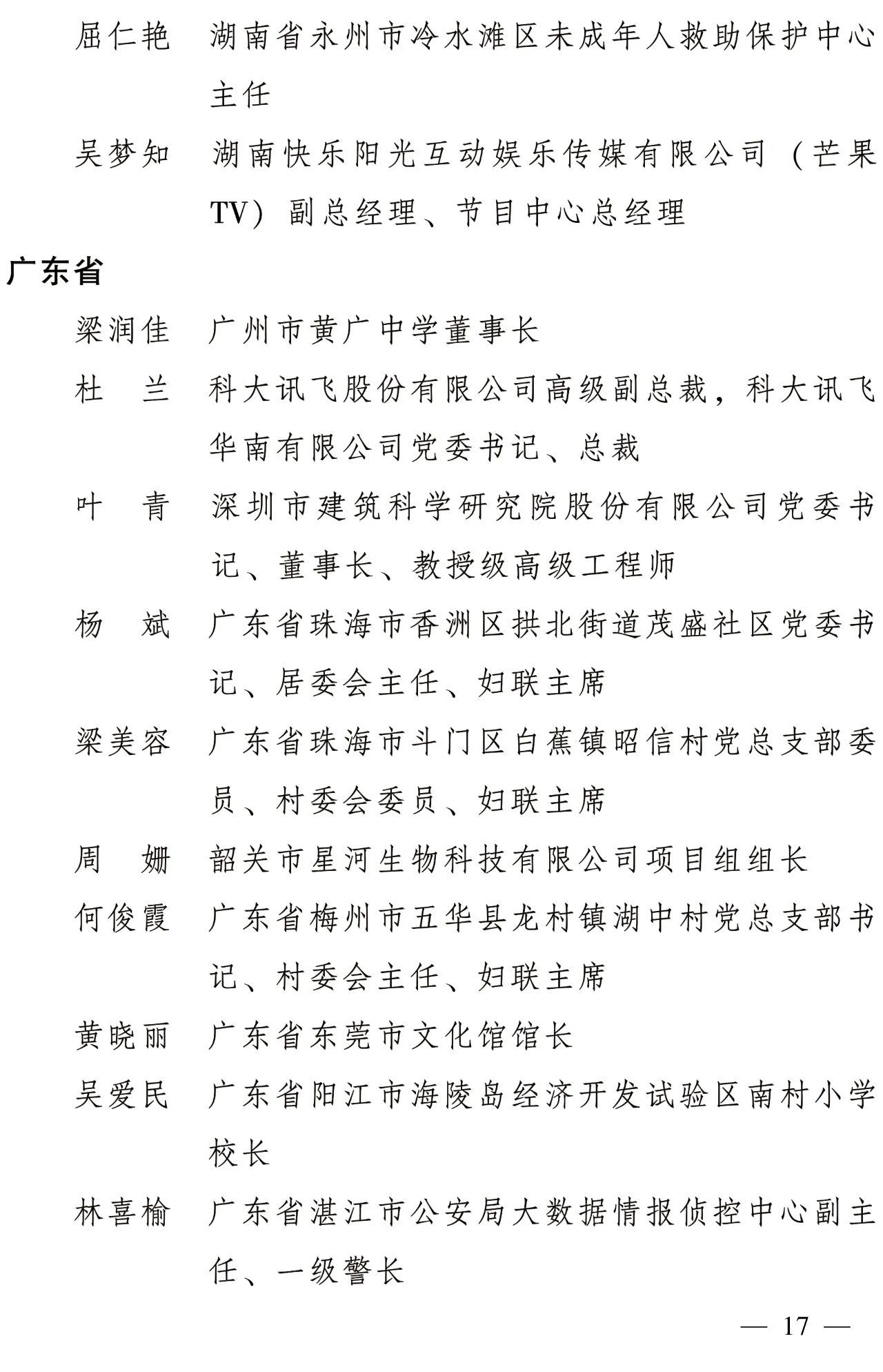 2022年度全國三八紅旗手標兵、全國三八紅旗手、全國三八紅旗集體全名單公布