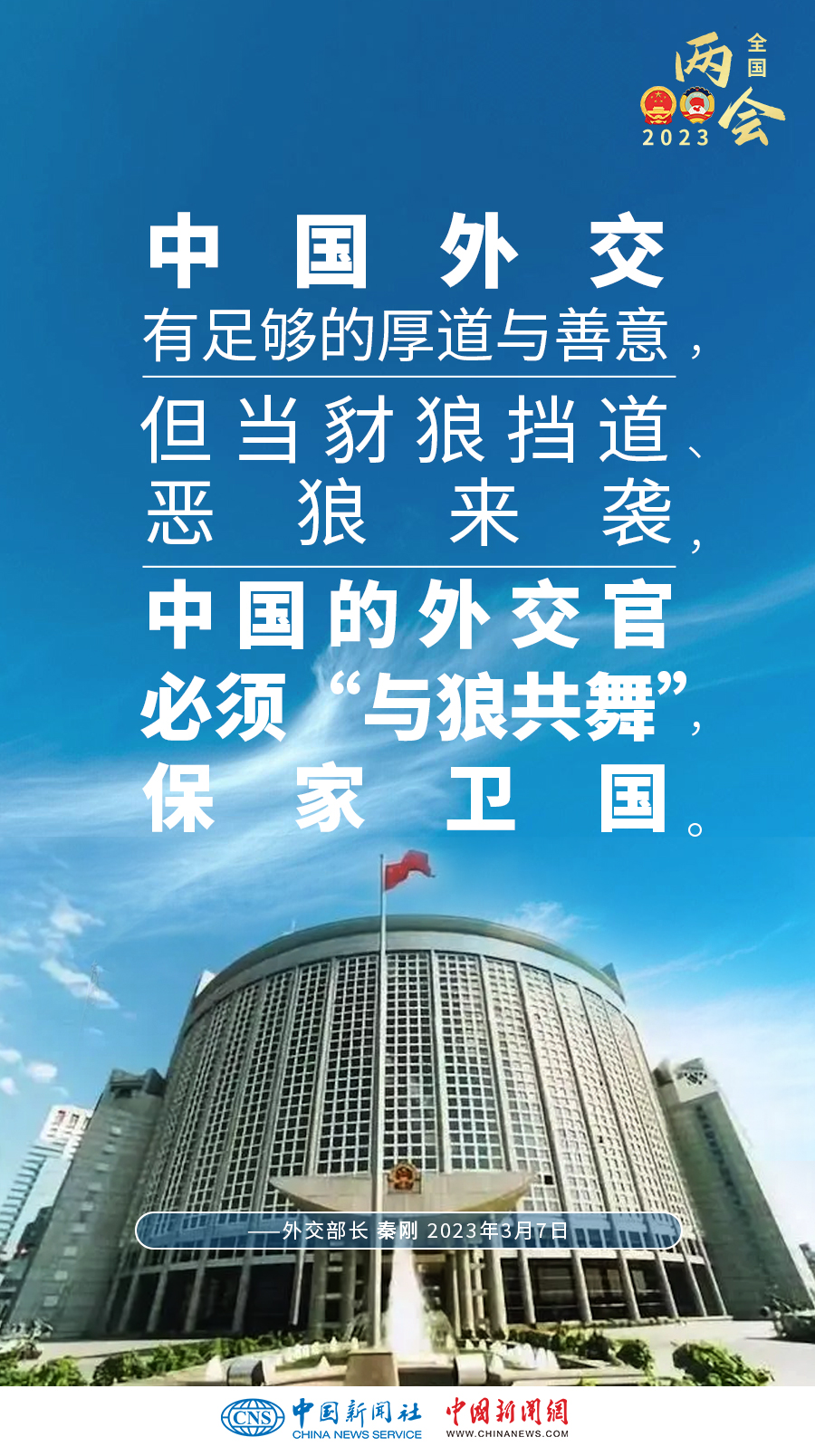 秦剛:兩千多年前,孔夫子就說過,“以德報德,以直報怨。以德報怨,何以報德?”中國外交有足夠的厚道與善意,但當(dāng)豺狼擋道、惡狼來襲,中國的外交官必須“與狼共舞”,保家衛(wèi)國。