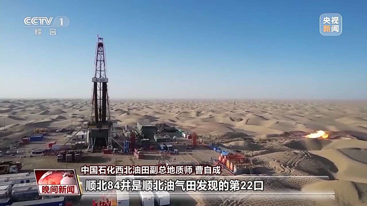 中國石化西北油田副總地質師 曹自成:順北84井是順北油氣田發(fā)現(xiàn)的第22口日產油當量超千噸的鉆井,這個油氣田潛力非常大,前景廣闊。