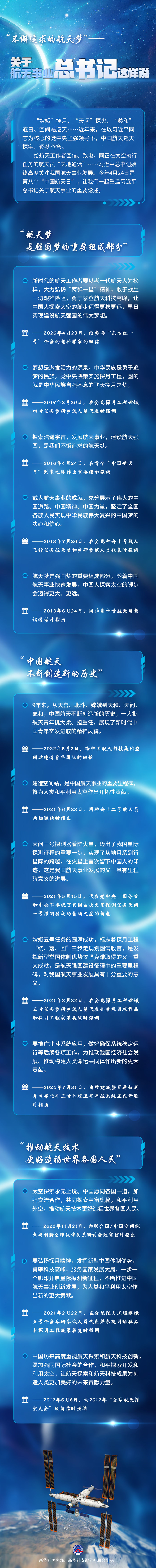 給航天工作者回信、致電,同正在太空?qǐng)?zhí)行任務(wù)的航天員“天地通話”……習(xí)近平總書記始終高度關(guān)注我國(guó)航天事業(yè)發(fā)展。今年4月24日是第八個(gè)“中國(guó)航天日”,讓我們一起重溫習(xí)近平總書記關(guān)于航天事業(yè)的重要論述。