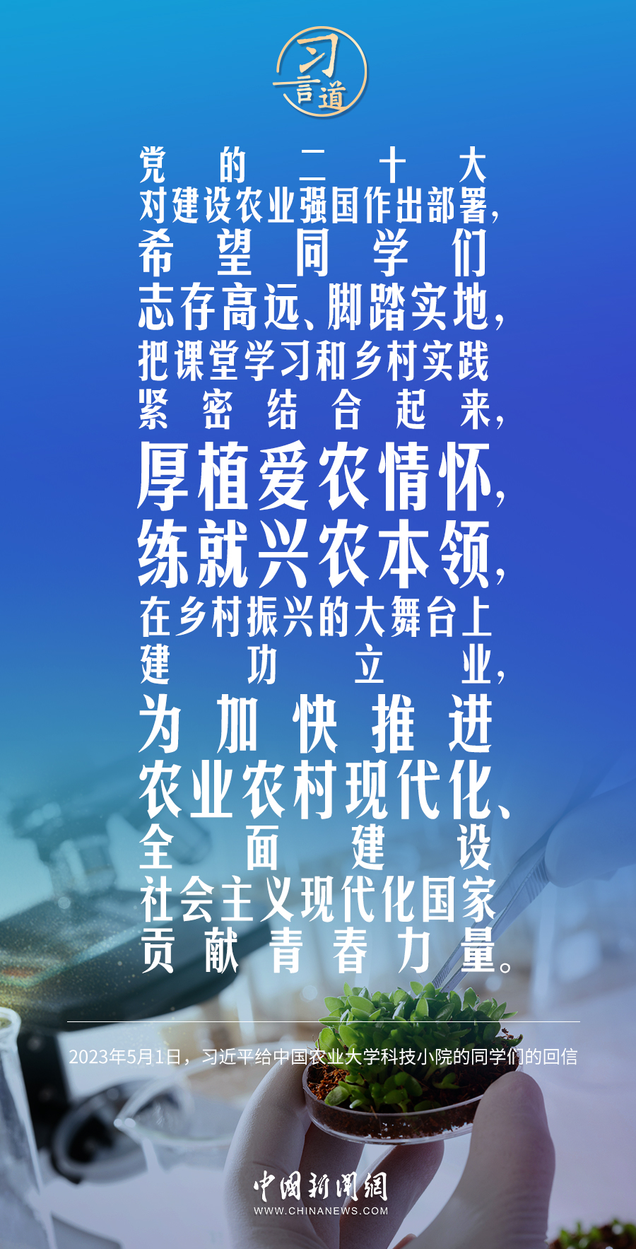 5月1日,中共中央總書記、國家主席、中央軍委主席習(xí)近平在給中國農(nóng)業(yè)大學(xué)科技小院同學(xué)們的回信中指出——