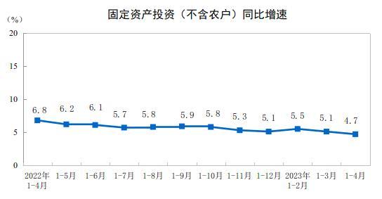 國(guó)家統(tǒng)計(jì)局:2023年1-4月份全國(guó)固定資產(chǎn)投資增長(zhǎng)4.7%
