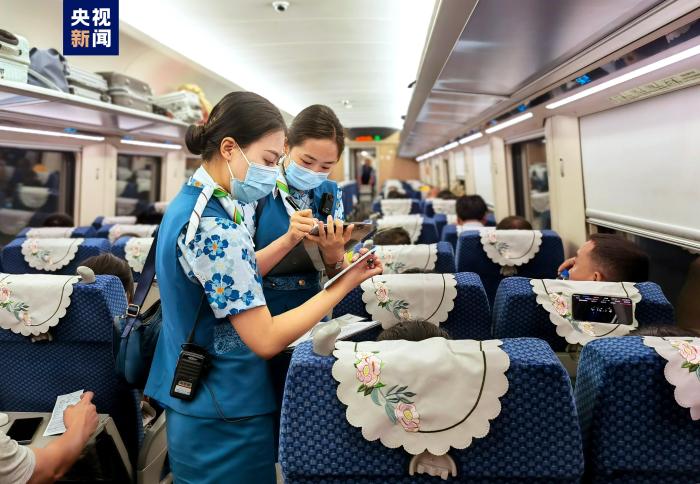 “列車上備有足夠的出入境卡,便于旅客在填錯(cuò)時(shí)能夠及時(shí)更換,乘務(wù)人員也會(huì)指導(dǎo)填寫,對于老年旅客或者使用手機(jī)不太順暢的旅客,我們會(huì)幫著完成出入境申報(bào),讓他們的出行體驗(yàn)更加便捷、溫馨?!敝欣翔F路國際旅客列車乘務(wù)指導(dǎo)兼列車長代蕊說。