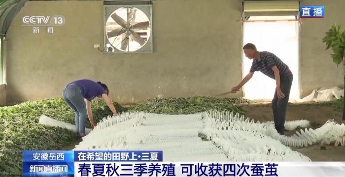 當(dāng)前這些即將結(jié)繭的熟蠶,其實(shí)是今年飼養(yǎng)的第二批了,在岳西縣目前形成了一年中,春、夏、秋三季養(yǎng)殖,分四批收獲的養(yǎng)殖模式。