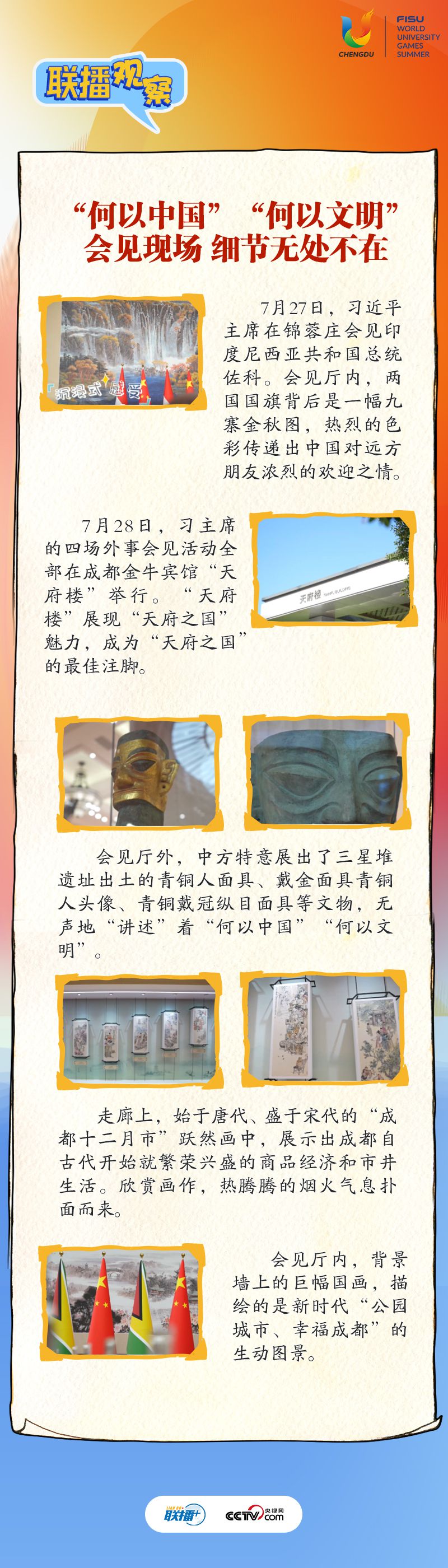 大運(yùn)會時間,我國重要的主場外交也同步拉開帷幕,習(xí)近平主席的日程格外繁忙。央視網(wǎng)《聯(lián)播+》帶您沉浸式感受這場青春盛會為世界送出的別具匠心的“四川禮物”。