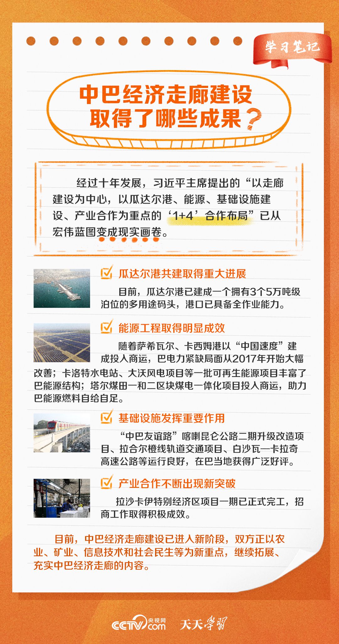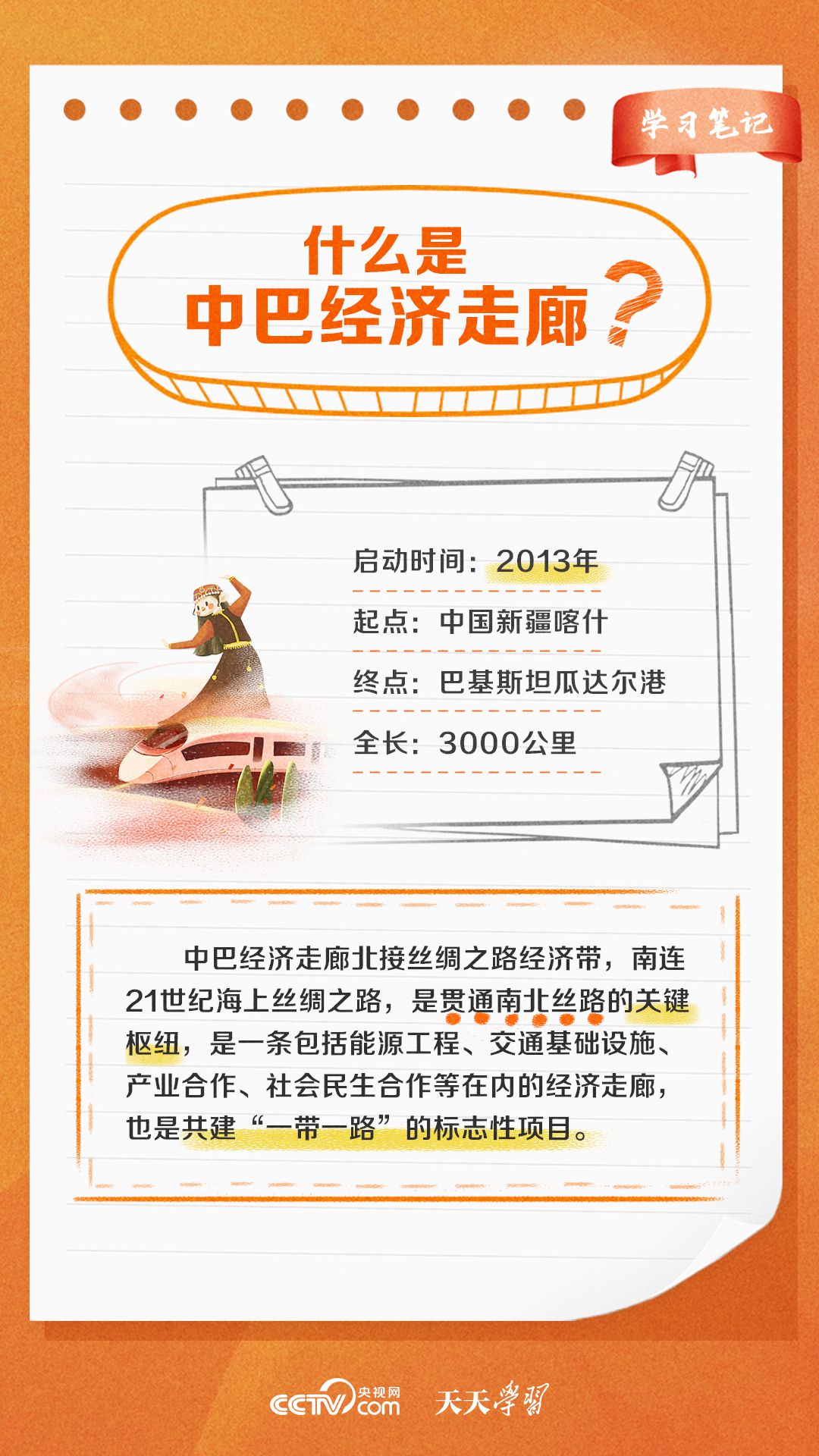 今年是習近平主席提出共建“一帶一路”倡議十周年,也是中巴經(jīng)濟走廊啟動十周年。經(jīng)過十年的發(fā)展,中巴經(jīng)濟走廊已成為中巴友誼“新標桿”。央視網(wǎng)《天天學習·學習筆記》特梳理中巴經(jīng)濟走廊相關(guān)知識點,與您一起學習。
