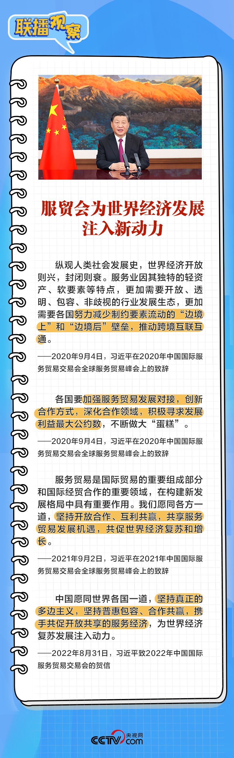 |聯(lián)播+|“當前,百年變局加速演進,世界經(jīng)濟復蘇動力不足。服務貿(mào)易是國際貿(mào)易的重要組成部分,服務業(yè)是國際經(jīng)貿(mào)合作的重要領域”。9月2日上午,習近平主席在北京向2023年中國國際服務貿(mào)易交易會全球服務貿(mào)易峰會發(fā)表視頻致辭。