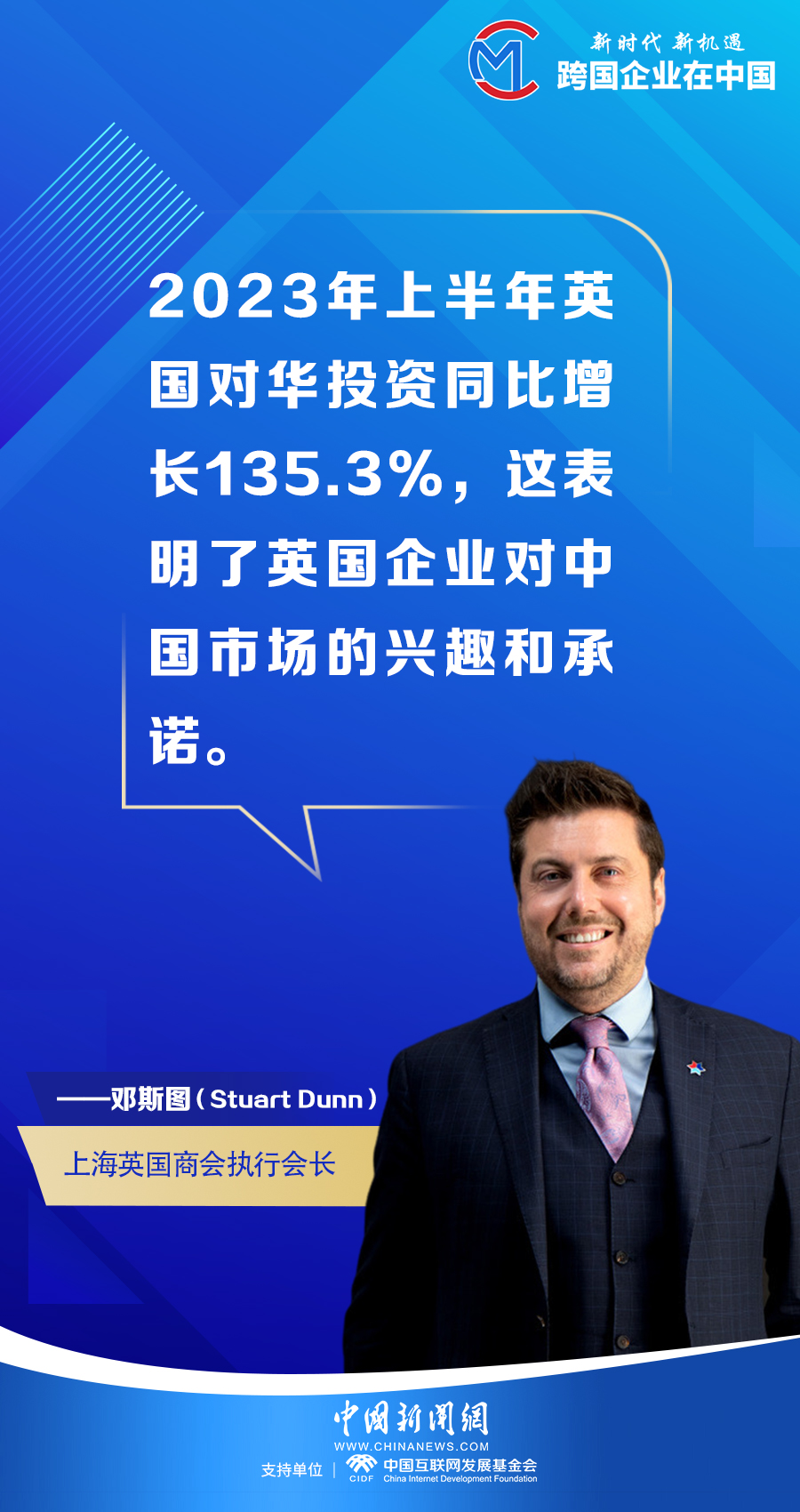 鄧斯圖表示,2023年上半年英國(guó)對(duì)華投資同比增長(zhǎng)135.3%,這表明了英國(guó)企業(yè)對(duì)中國(guó)市場(chǎng)的興趣和承諾。