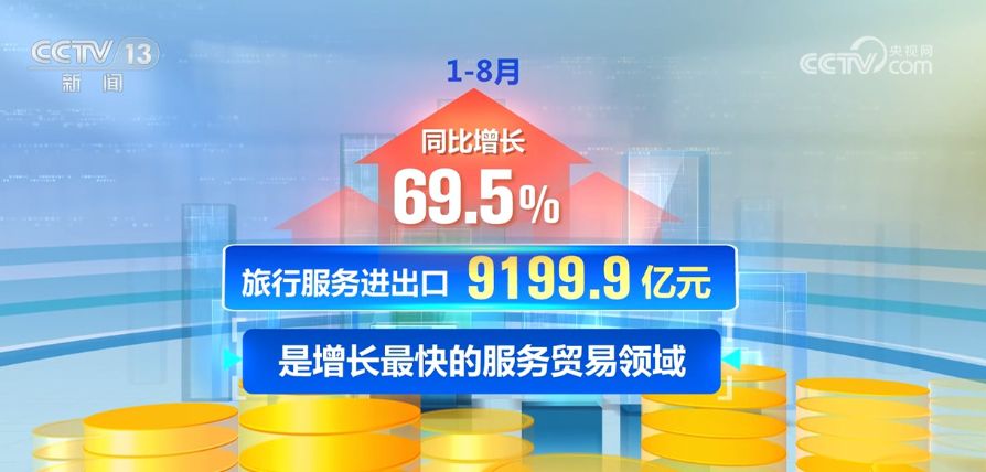 旅行服務(wù)持續(xù)恢復(fù)。1—8月,旅行服務(wù)進出口9199.9億元,同比增長69.5%,是增長最快的服務(wù)貿(mào)易領(lǐng)域。其中,出口增長54.9%,進口增長70.7%。