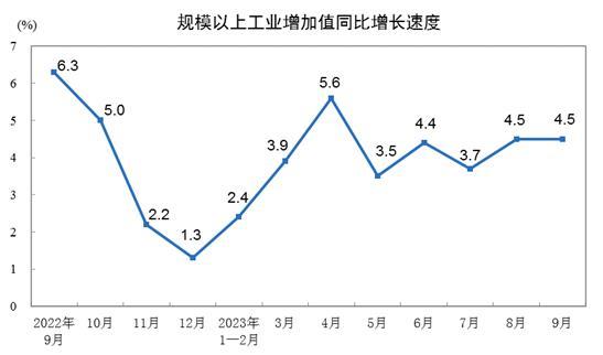 國(guó)家統(tǒng)計(jì)局:9月份規(guī)模以上工業(yè)增加值增長(zhǎng)4.5%