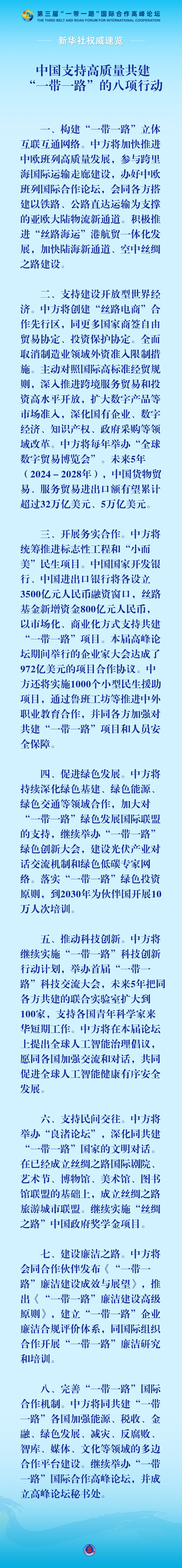 新華社權(quán)威速覽|習(xí)近平宣布中國(guó)支持高質(zhì)量共建“一帶一路”的八項(xiàng)行動(dòng)