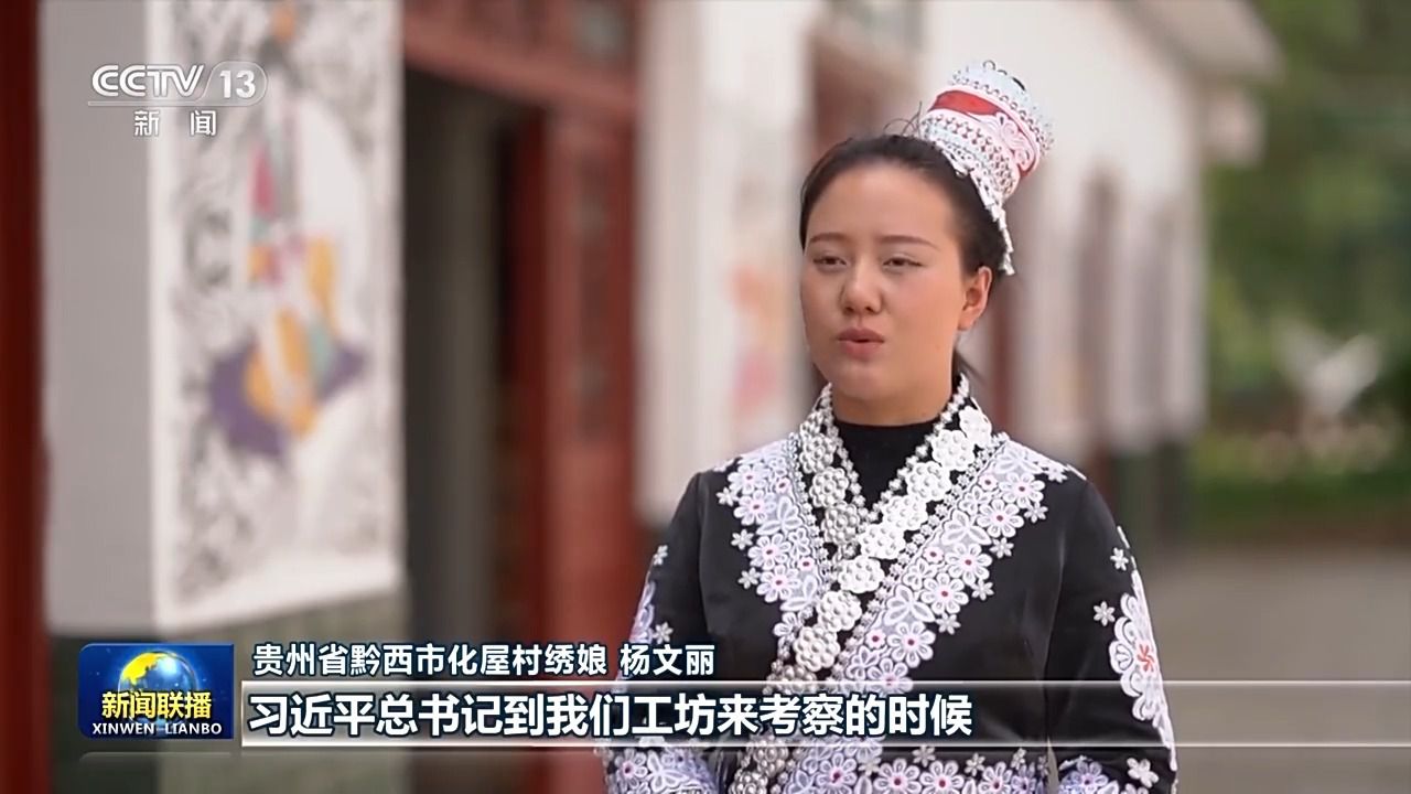 貴州省黔西市化屋村繡娘 楊文麗:習(xí)近平總書記到我們工坊來考察的時(shí)候,囑咐我們要把苗繡傳承好,發(fā)展好,推動鄉(xiāng)村振興。這也為我們發(fā)展好苗繡產(chǎn)業(yè)打開了一個(gè)新思路。