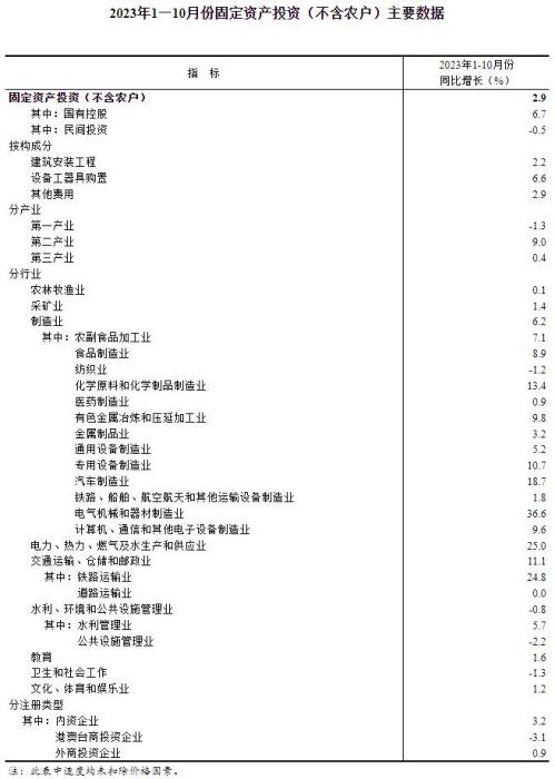 國家統(tǒng)計(jì)局:1—10月份全國固定資產(chǎn)投資增長2.9%