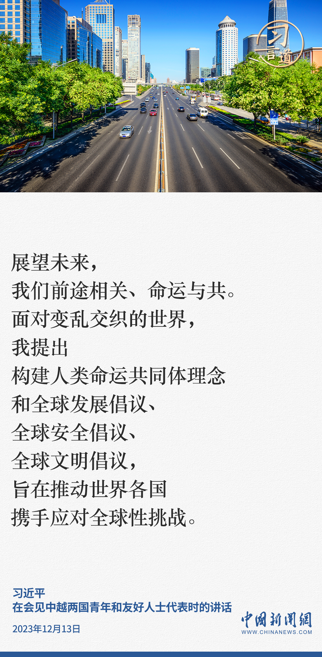 當(dāng)?shù)貢r(shí)間12月13日下午,中共中央總書記、國(guó)家主席習(xí)近平和夫人彭麗媛在河內(nèi)同越共中央總書記阮富仲夫婦共同會(huì)見中越兩國(guó)青年和友好人士代表。習(xí)近平指出——
