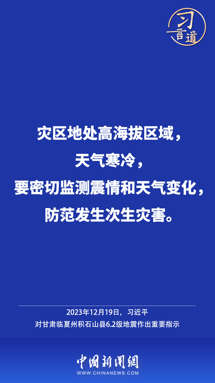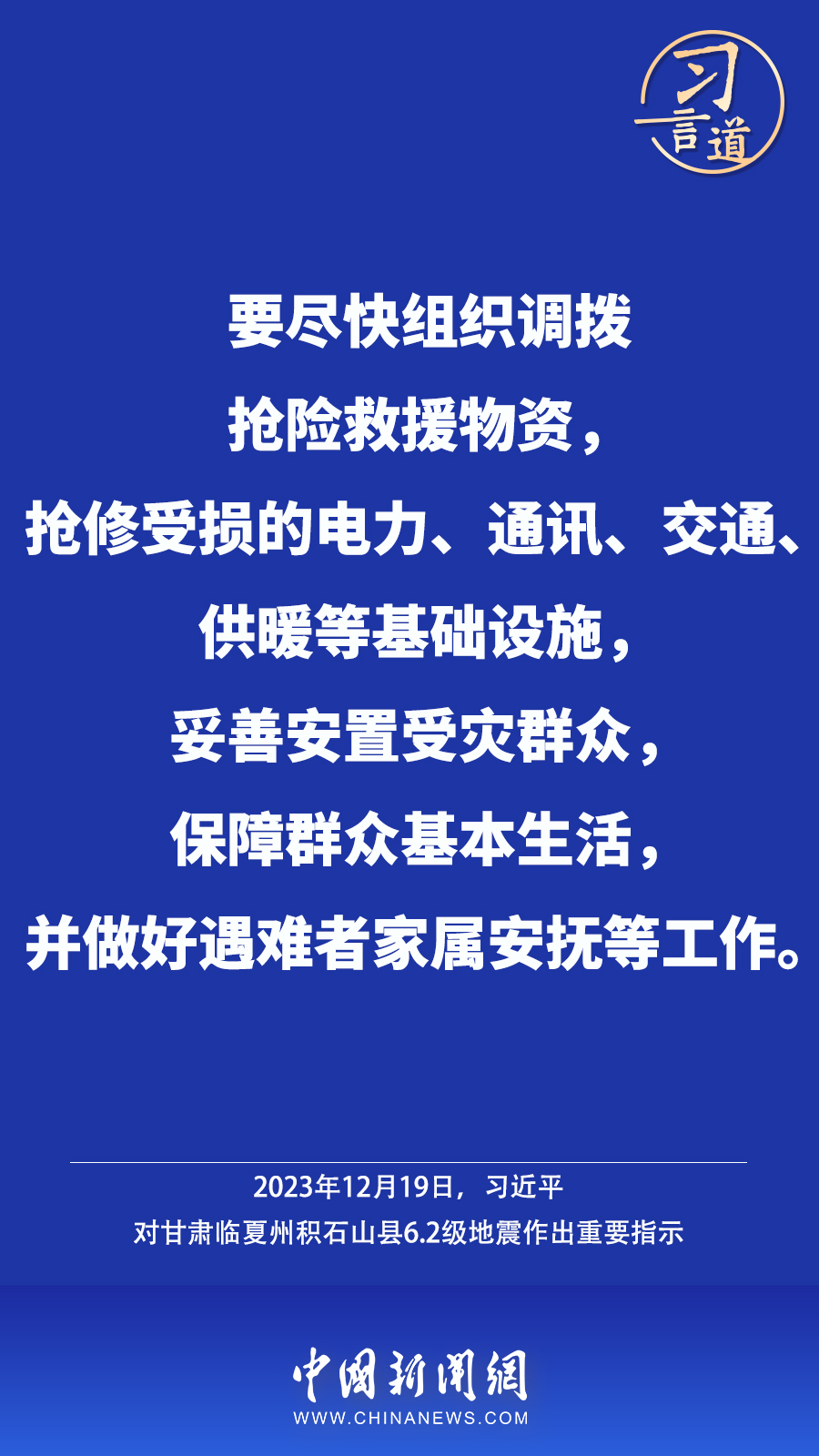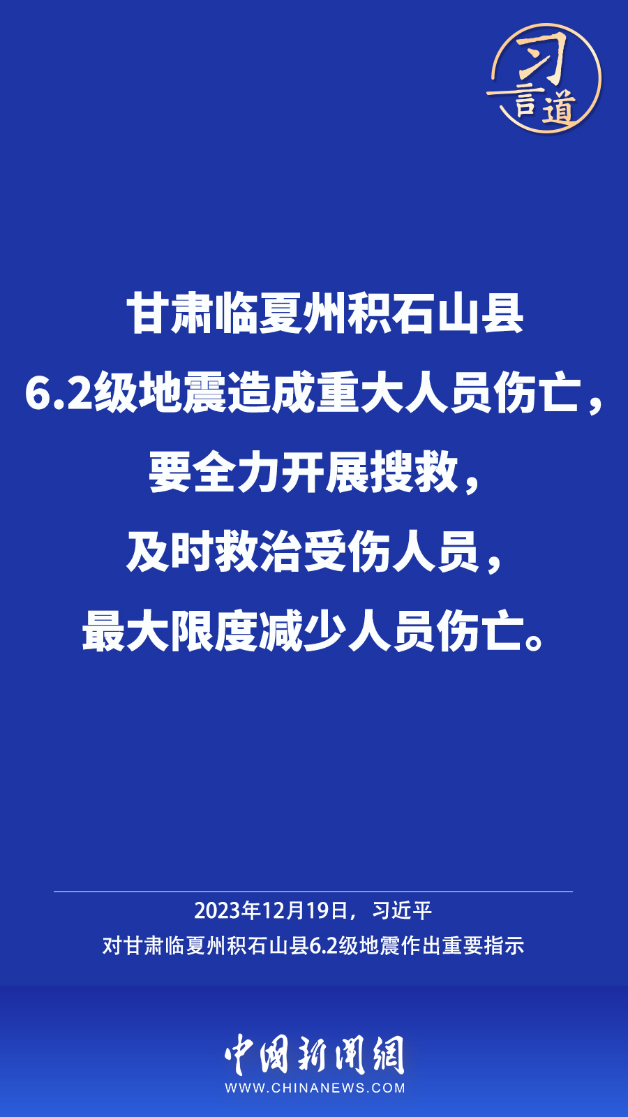 北京時(shí)間12月18日23時(shí)59分,甘肅臨夏州積石山縣發(fā)生6.2級(jí)地震,震源深度10公里。地震發(fā)生后,中共中央總書(shū)記、國(guó)家主席、中央軍委主席習(xí)近平高度重視并作出重要指示——