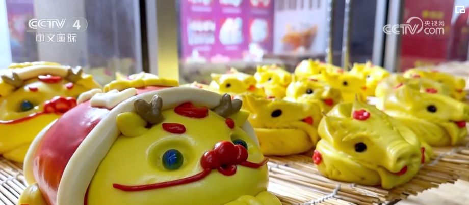 在山東,逢年過節(jié)人們也有做花餑餑、吃花餑餑的民俗。為迎合春節(jié)市場,不少加工廠已經(jīng)在趕制帶有龍年元素的花餑餑。面點(diǎn)師們先將面團(tuán)搓長,再用果蔬汁調(diào)制,最后再揉捏造型。花餑餑披上“紅衣”,一只可愛的“醒獅龍”就活靈活現(xiàn)地出現(xiàn)在眼前。