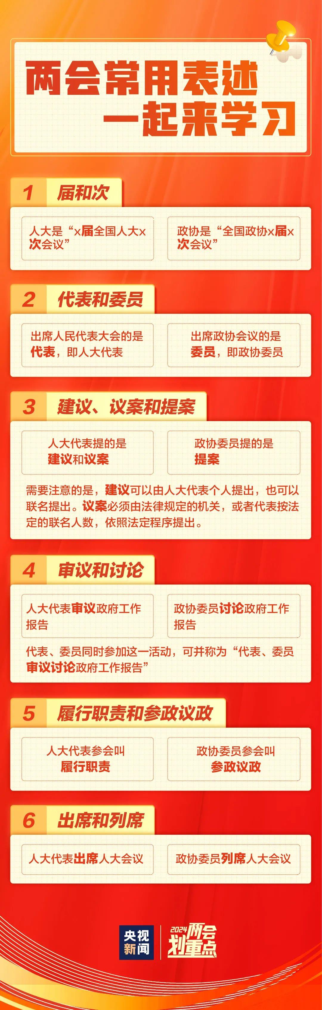 2024年全國兩會(huì)越來越近。關(guān)于全國兩會(huì),你了解多少?今天,央視新聞為你準(zhǔn)備了一份全面的科普??磮D,花上幾分鐘,一起學(xué)習(xí)關(guān)于兩會(huì)的知識(shí)。