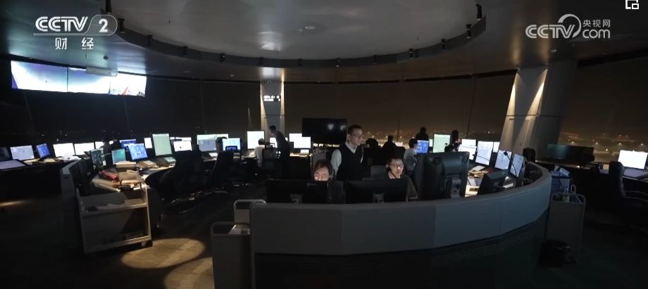 夜里1點(diǎn)多,在鄂州花湖機(jī)場(chǎng)的塔臺(tái)上,管制員正在沉著地指揮飛來的貨機(jī)進(jìn)場(chǎng),監(jiān)控屏幕上顯示著即將進(jìn)入機(jī)場(chǎng)空域的貨機(jī)有十幾架。