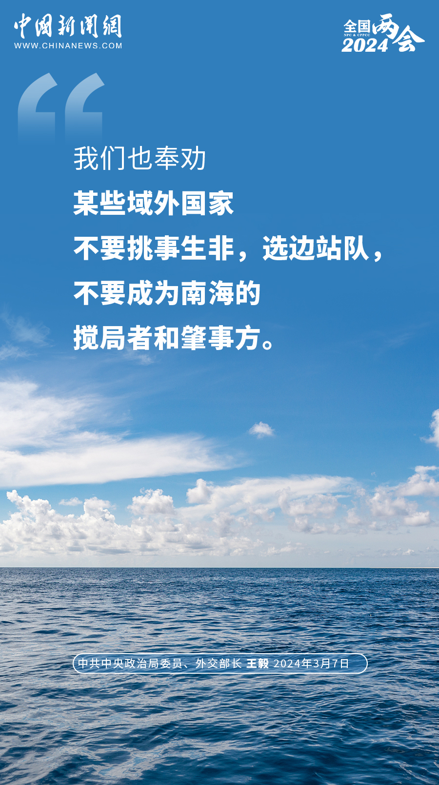王毅:中國人民在南海世代生活勞作,南海諸島早已是中國政府依法管轄的領土。今天的南海,又是世界上最繁忙、最安全、最自由的航道。幾十年來,全球50%的商船、三分之一的海上貿(mào)易航經(jīng)于此,從未受到任何干擾阻礙。環(huán)顧動蕩的世界,南海能保持和平穩(wěn)定,離不開中國和東盟國家共同作出的努力,殊為不易,彌足珍惜。