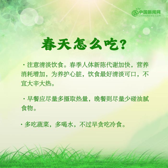 春天是萬物復(fù)蘇的季節(jié),也是調(diào)養(yǎng)身體的好時節(jié)。①每天保證6~8小時的睡眠,避免熬夜;②適當(dāng)進行一些戶外活動,曬太陽、踏青賞景等;③不過早減衣,穿衣注意下厚上薄;④注意清淡飲食,多吃蔬菜,多喝水……春季養(yǎng)生要注意什么?詳戳↓↓