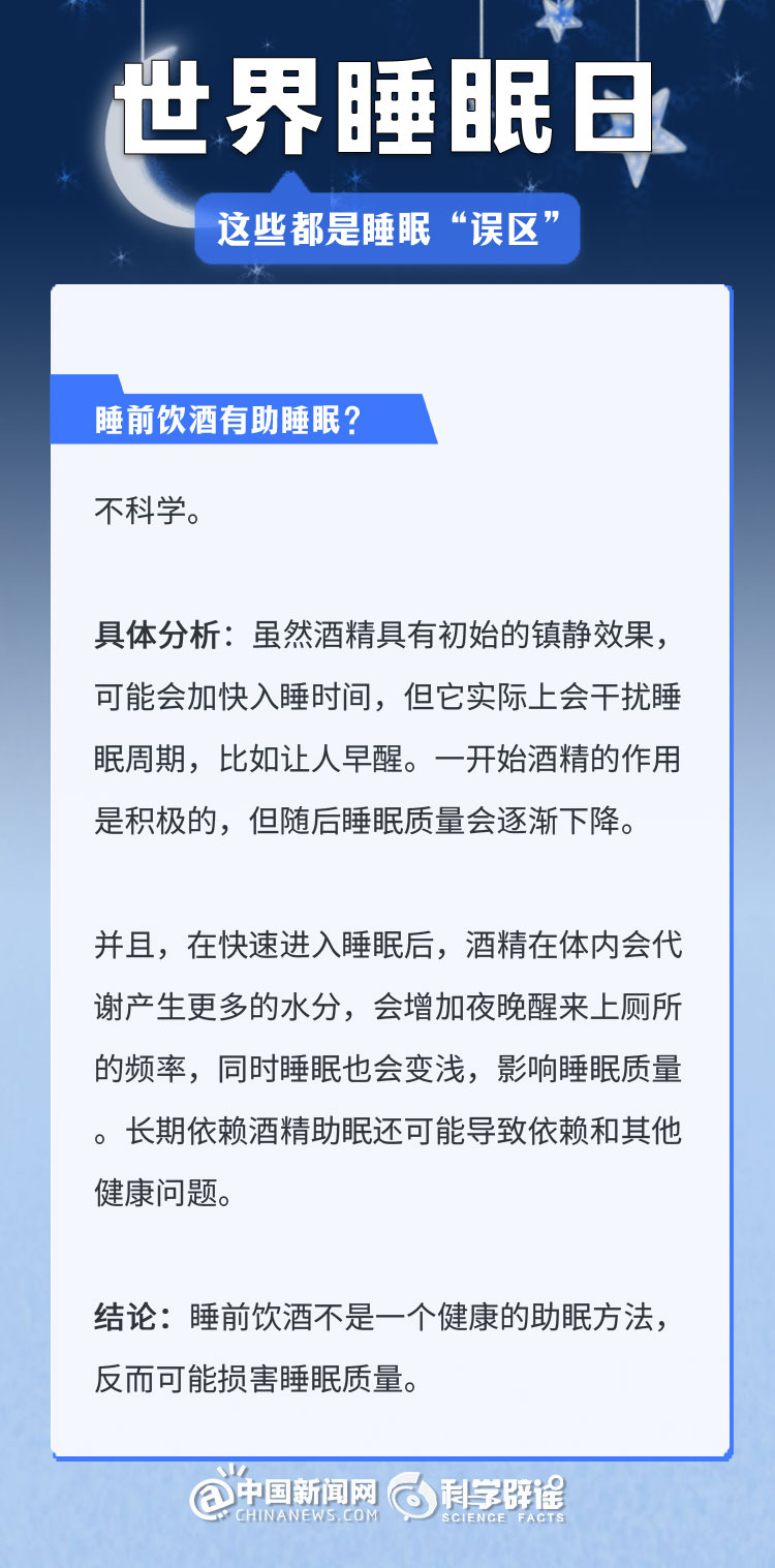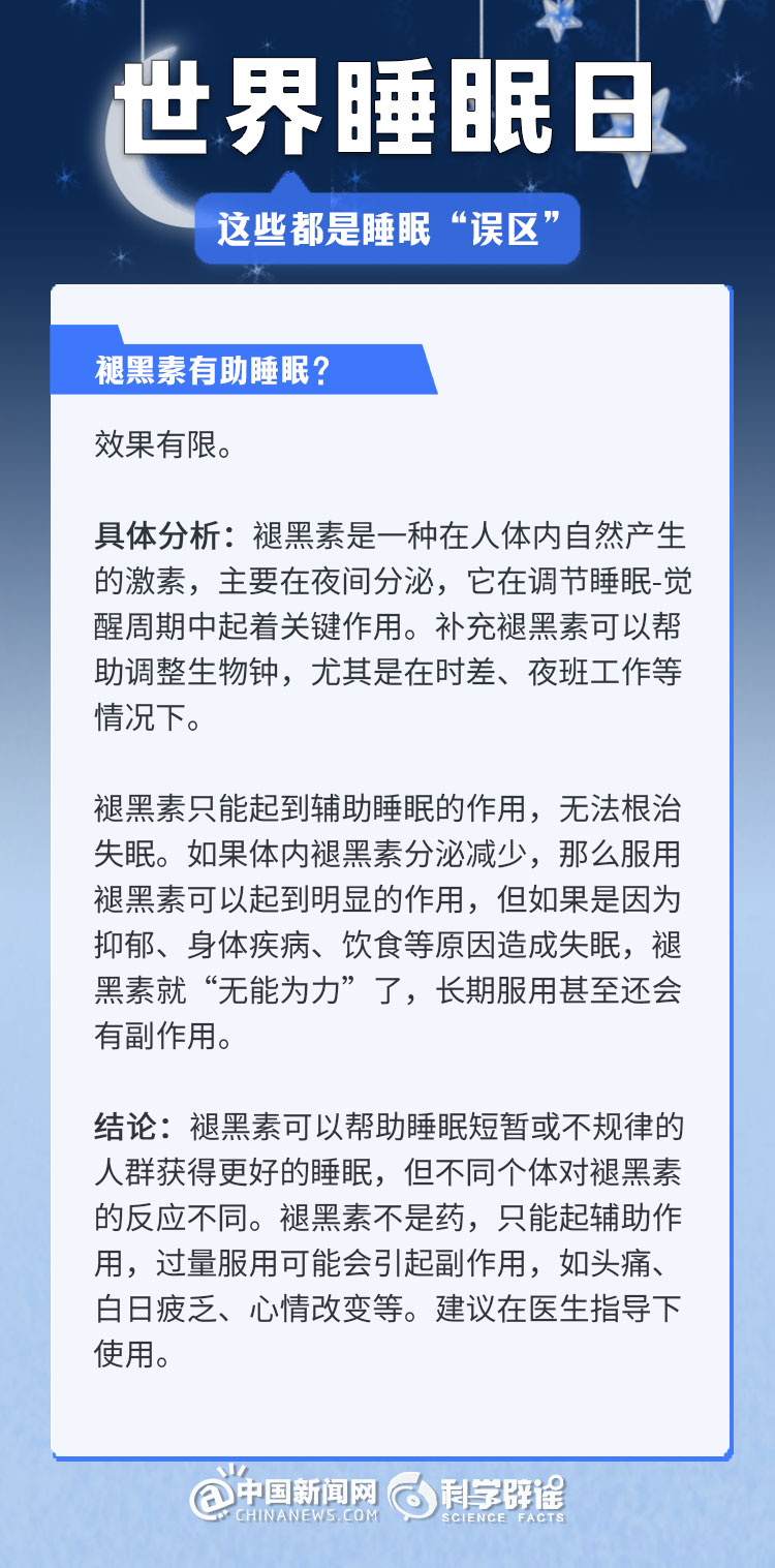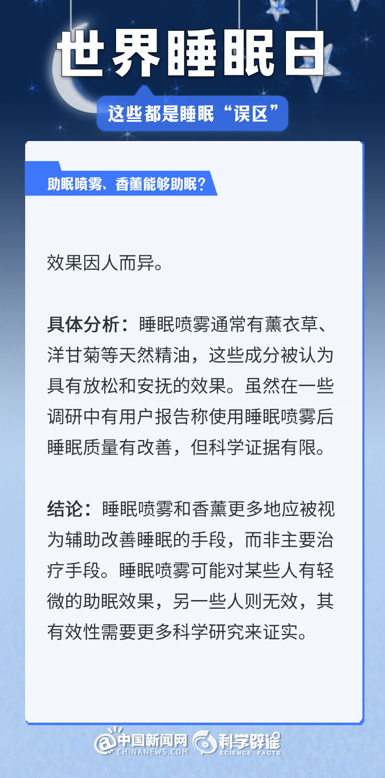 中新網(wǎng)3月21日電 《中國睡眠研究報告(2024)》顯示,2023年居民睡眠指數(shù)為62.61分,較2022年降低了5.16。去年的報告中,曾有近半數(shù)民眾每晚平均睡眠時長不足8小時(47.55%)。很多人正在經(jīng)受著睡眠問題的困擾,為了避免大家被誤導,我們總結了幾個生活中常見的睡眠誤區(qū),一起來了解一下吧!(來源:科學辟謠 中國新聞網(wǎng)微博)