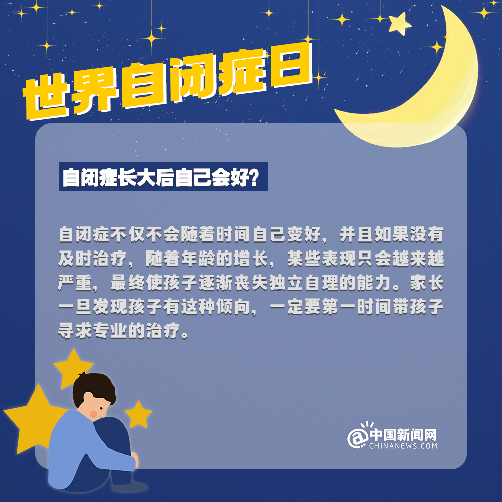 中新網(wǎng)4月2日電 自閉癥兒童,也被稱為“來自星星的孩子”,他們的情緒難以捉摸,他們的思想難以表達(dá),他們像星星一樣孤獨地游離在宇宙中……有數(shù)據(jù)顯示:目前中國自閉癥患者已超1300萬人。自閉癥有哪些認(rèn)知誤區(qū)?該如何早期識別自閉癥?詳情↓關(guān)愛自閉癥患者,讓星星的孩子有愛不孤單!