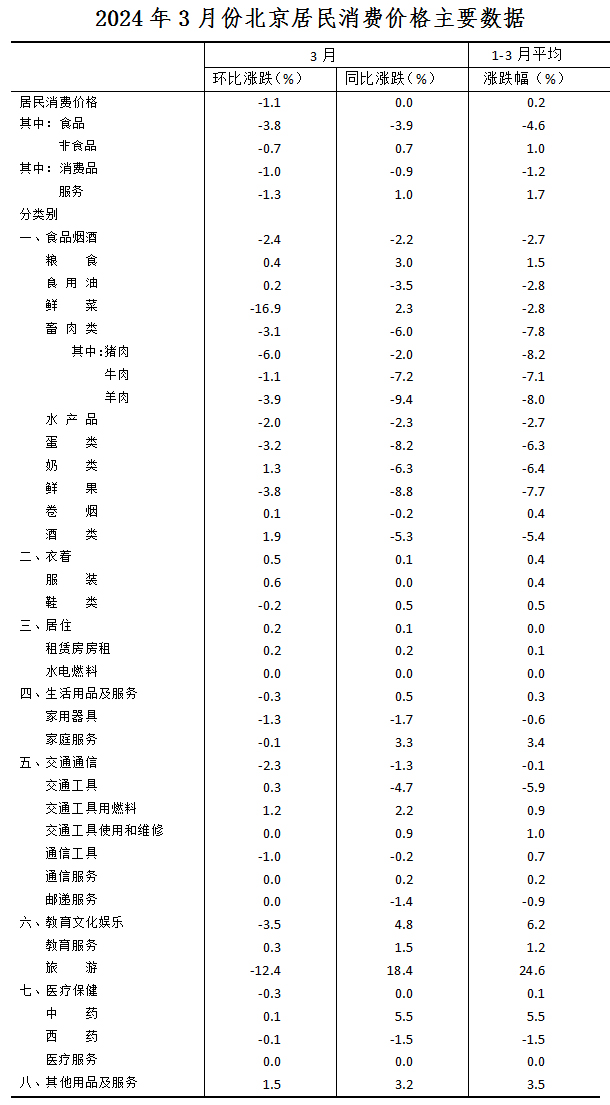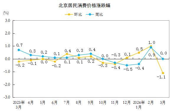 北京3月居民消費價格環(huán)比下降1.1% 同比持平