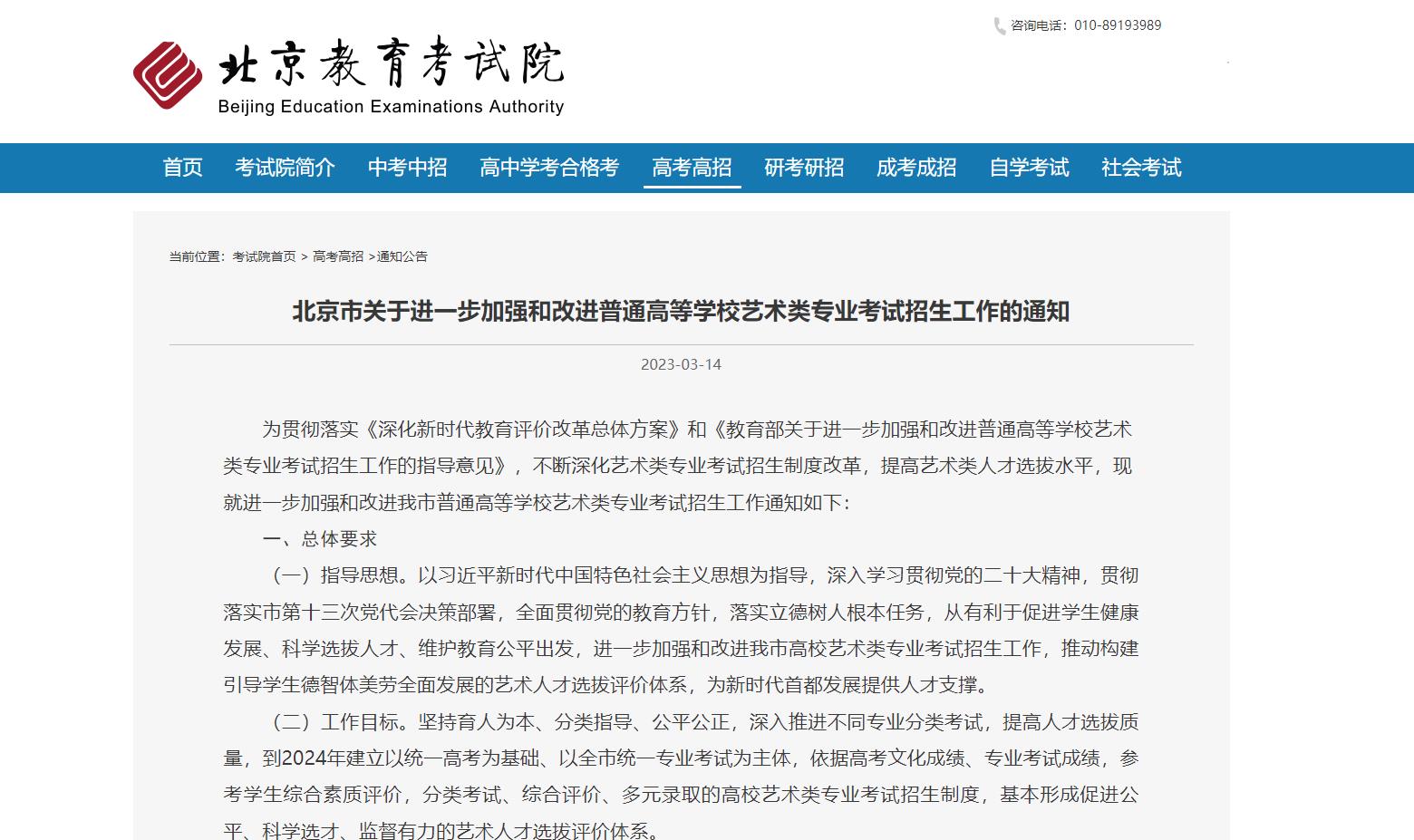 北京明年6個(gè)藝術(shù)類專業(yè)實(shí)行統(tǒng)考