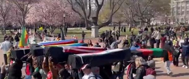 美反戰(zhàn)人士白宮外“抬棺抗議”:對美國無休止戰(zhàn)爭說不!