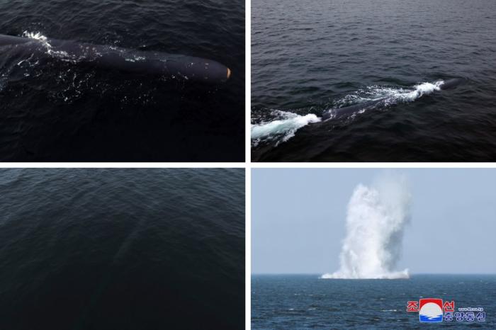 據(jù)朝中社3月28日報道,3月25日下午,朝鮮核無人潛水攻擊艇“海嘯—1”型在元山灣進入試驗,沿著在朝鮮東海設定的模擬600公里界限距離的之字形及橢圓形航線潛航41小時27分,3月27日上午到達咸鏡北道花臺郡前海預定目標水域,且試驗用戰(zhàn)斗部在水下成功爆炸。